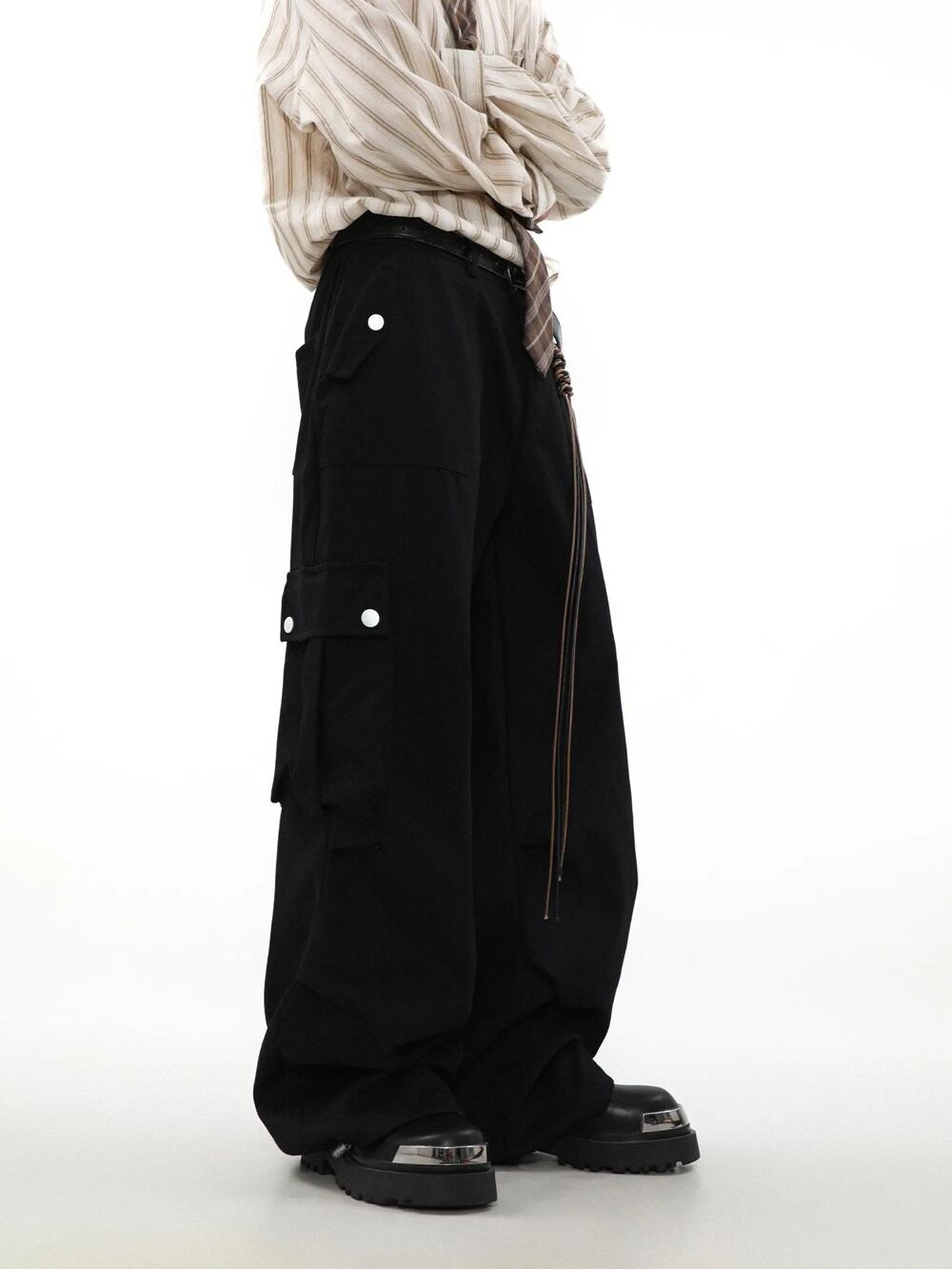 Houzhou-メンズワイドカーゴパンツ、バギーパンツ、特大、ルーズ、カジュアル、ヒップホップ、ポケット、男性ストリートウェア、春 y2k ボトムス T240831222725_01