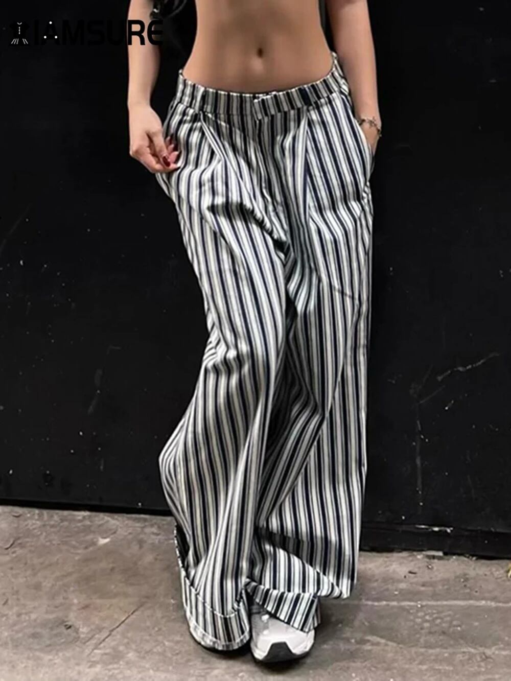 Iamsure-女性のカジュアルなストライプのワイドレッグパンツ、ルーズなベーシックなミッドウエストカーゴパンツ、レディースストリートウェア、春と秋のファッション、2024 y2k ボトムス T240831222814_01