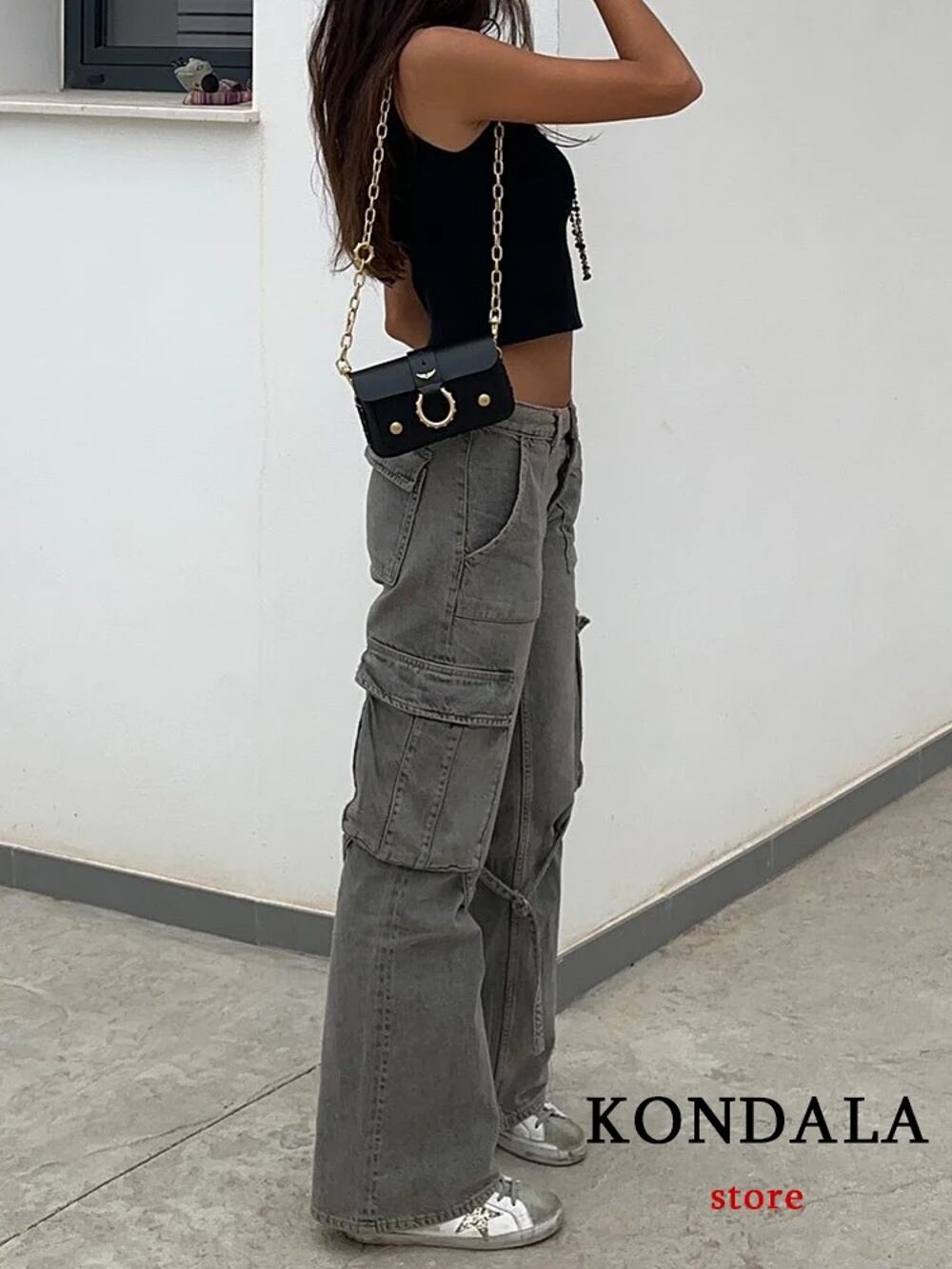 Kodala-女性のシックなデニムストリートウェア、フレアパンツ、スプリングポケット、y2k、Spectrool girl、ルーズスポーツティ、ジップカーゴパンツ、ファッション、春、2022 y2k ボトムス T240831222916_03