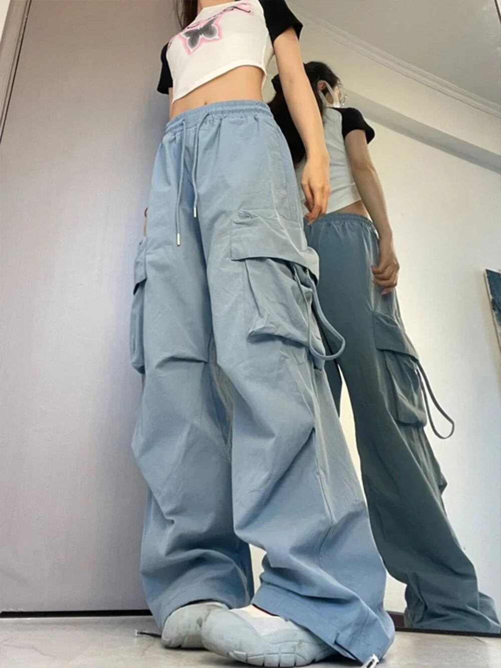 女性用ワイドレッグカーゴパンツ、ハイウエスト、バギーストリートウェア、マルチポケットスウェットパンツ、ヒップホップ、ルーズ、カジュアル、韓国ファッション、y2k y2k ボトムス T240831222941_01