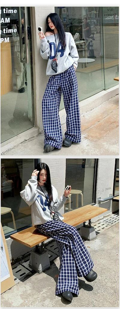 ワイドパンツ ガウチョパンツ パンツ レディース チェック柄 チェック柄パンツ フレアパンツ ロングパンツ ゆったり 美脚 薄手 ロング丈パンツ 細見え 着痩せ ワイドパンツ 体型カバー お洒落 綺麗