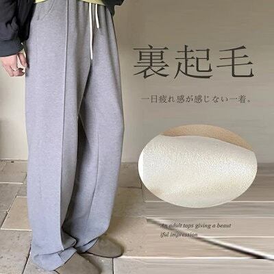ワイドパンツ ガウチョパンツ パンツ レディース 裏起毛 ウエストゴム きれいめ ピンタック 秋冬 ボトムス ロングパンツ ワイド ハイウエスト ポケット付き ロング ワンマイルウェア 低身長 高身長