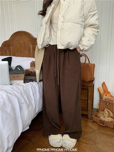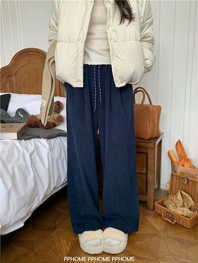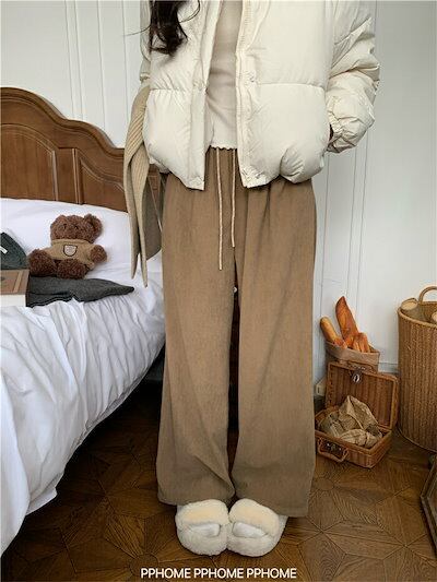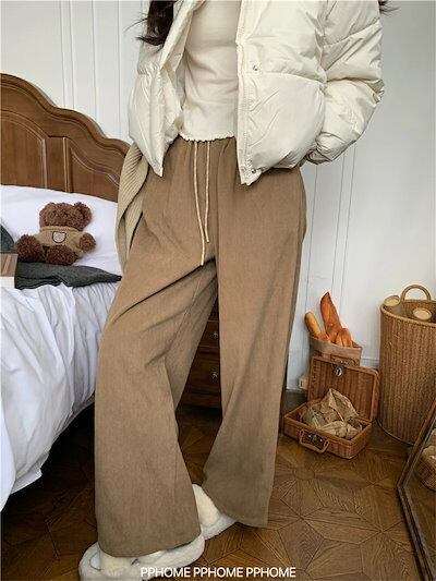 ワイドパンツ ガウチョパンツ パンツ レディース 秋冬 ロング コーデュロイ ボトムス ロングパンツ コーデュロイパンツ ストレートパンツ ズボン 長ズボン ゴムウエスト ボトムス 体型カバー リラッ