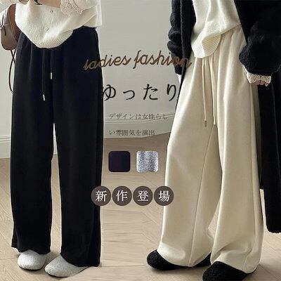 ストレートパンツ ワイドパンツ ガウチョパンツ パンツ レディース 秋冬 ワイド スウェット ウエストゴム ゆったり 体型カバー ロングパンツ 無地 無地パンツ おしゃれ スウェットパンツ ゆっると