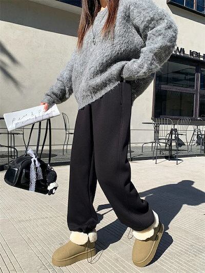 裏起毛 ストレートパンツ ワイドパンツ ガウチョパンツ パンツ レディース 冬 ワイド スウェット ウエストゴム ゆったり 体型カバー ジャージ 厚手 裏起毛パンツ 暖かい スウェットパンツ 裏ボア