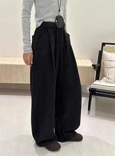 ワイドパンツ ガウチョパンツ パンツ レディース 秋冬 ロング カーブパンツ ボトムス ロングパンツ 長ズボン ストレートパンツ ズボン ゆったりパンツ ゆっると ゴムウエスト ボトムス 体型カバー