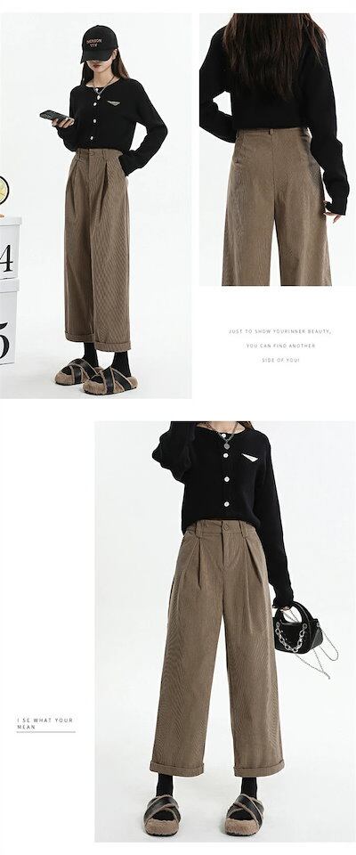 ストレートパンツ コーデュロイ パンツ レディース 秋冬 ワイドパンツ ロングパンツ コーデュロイパンツ ガウチョパンツ 体型カバー パンツ ロング ロング丈パンツ コーデュロイ 秋物 ロールアップ
