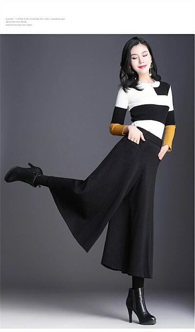 ワイドパンツ 九分丈 レディース パンツ 秋冬 ガウチョパンツ 冬 スカーチョ 厚手 きれいめ 秋冬 タックフレアパンツ スカンツ ガウチョ イージーパンツ フレア 大きいサイズ 仕事 ゆったり コー