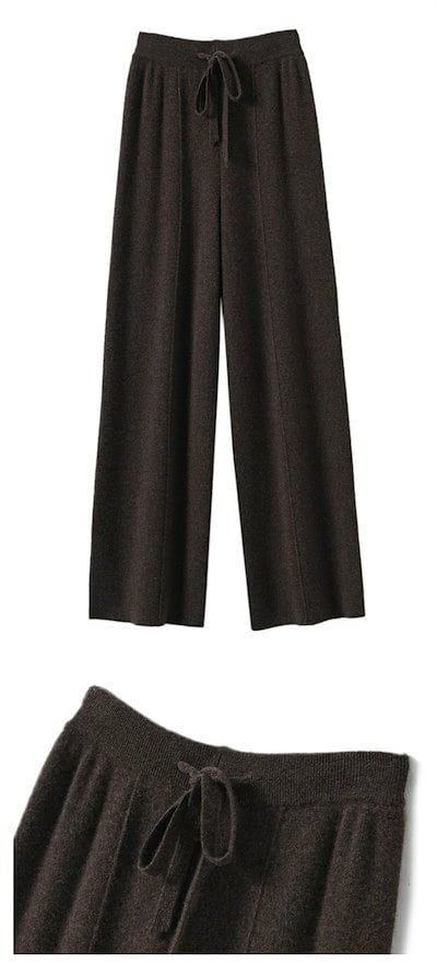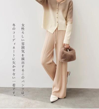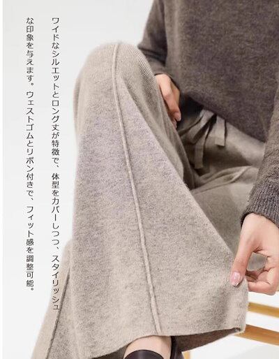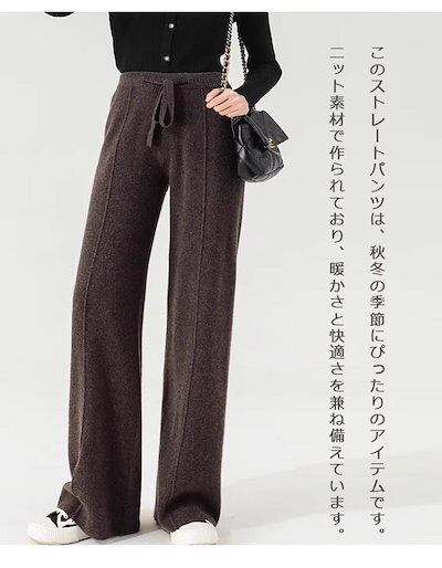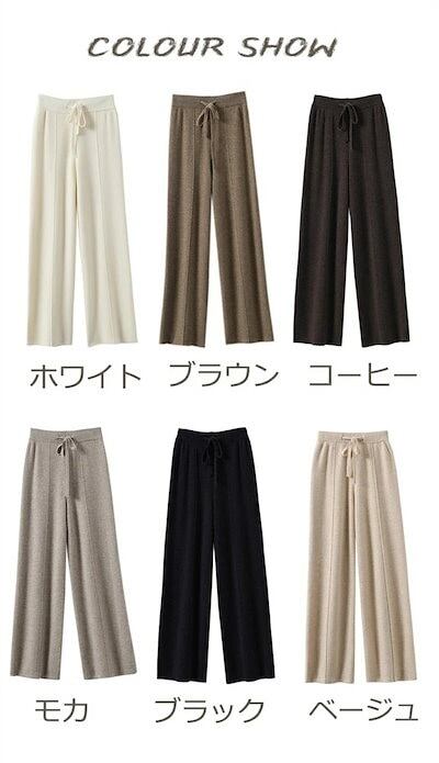 ストレートパンツ レディース 秋冬 ガウチョパンツ パンツ ロングパンツ ニット パンツ ニットパンツ ワイドパンツ ロング丈 冬 ウェストゴム 体型カバー リボン付き