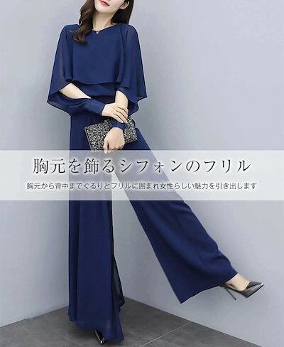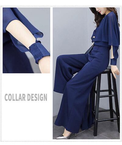 セットアップ レディース パンツドレス 結婚式 セットアップ 袖あり ワイドパンツ ブラウス ガウチョパンツ 卒業式 オールインワン きれいめ パンツスーツ フォーマル パーティー 披露宴 二次会 2