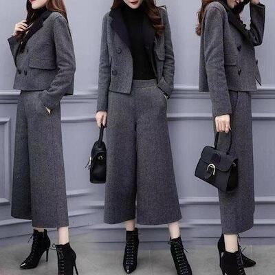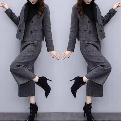 セットアップ パンツスーツ レディース パンツドレス ワイドパンツ ジャケット 無地 レディース 秋 冬 ガウチョパンツ アウター テーラードジャケット