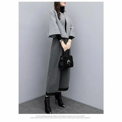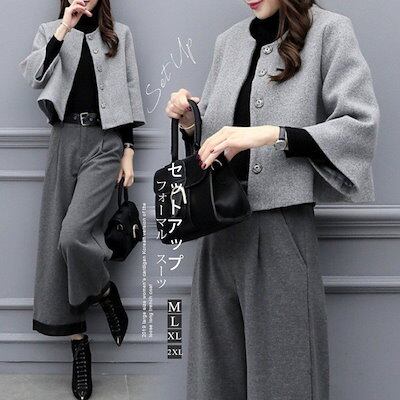 セットアップ レディース ガウチョパンツ ワイドパンツ スーツ コート 秋冬 ウール混コート 秋 冬 春 ノーカラー テーラードジャケット ゆったり フォーマル 卒業式 入学式 入園式 セレモニー 2