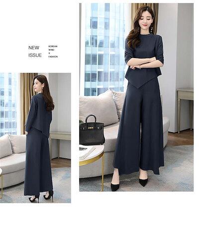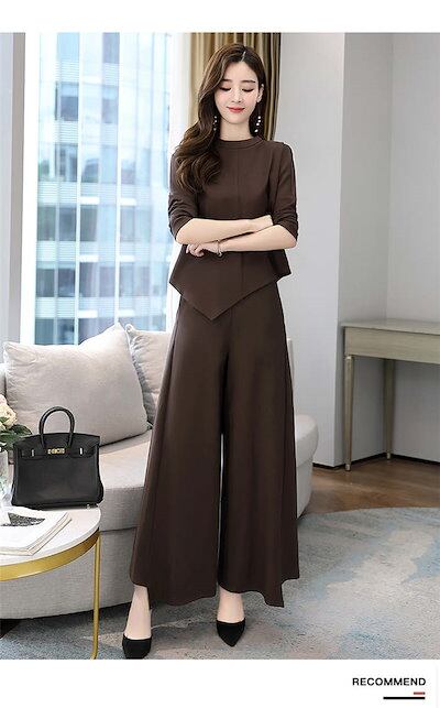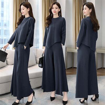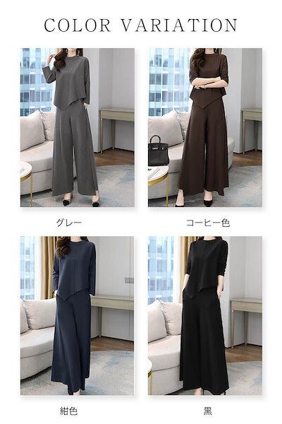 セットアップ レディース 洗える 上下セット 無地 2点セット トップス ワイドパンツ セットアップ ガウチョパンツ アシンメトリー ウエストゴム 上品 きれいめ 着痩せ 通勤 オフィス おしゃれ フ