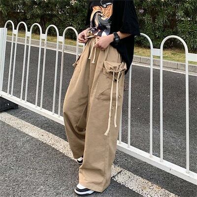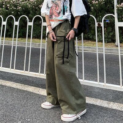 メガ割 ワイドパンツ カーゴパンツ メンズ レディース ミリタリー カーゴ コットン ガウチョパンツ 無地 ボトムス ポケット 長ズボン 大きいサイズ ウエストゴム 体型カバー 着回し アウトドア