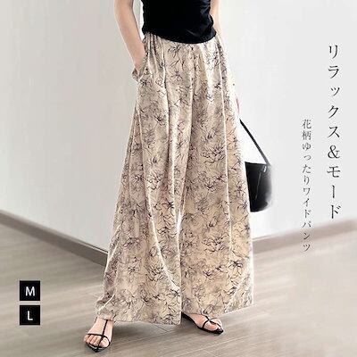 メガ割 ワイドパンツ レディース パンツ ガウチョパンツ スカーチョ ボタニカル柄 総柄 花柄 マキシ丈 ロング丈 フレアパンツ イージーパンツ プリント フラワー ウエストゴム ゆったり 楽ちん