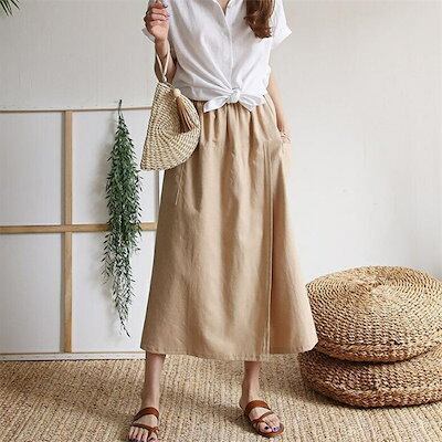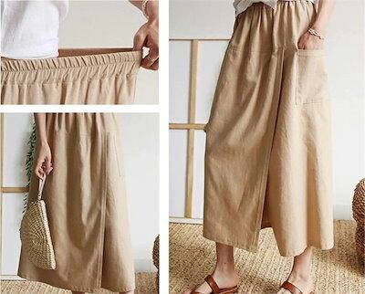 スカート風 パンツ レディース ガウチョパンツ ラップスカート風 ボトムス キュロットパンツ 春 夏 ワイドパンツ 無地 綿麻風 スカーチョ 涼しい ポケット 巻きスカート ラップパンツ 綿麻 涼しい