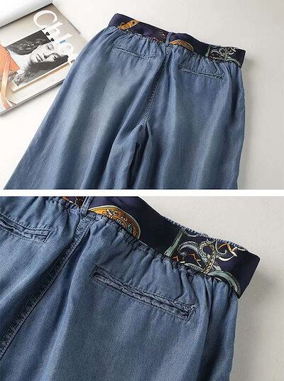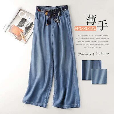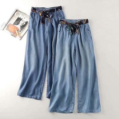 デニム ワイドパンツ ガウチョパンツ デニムパンツ UVカット 冷感素材 接触冷感 冷感 スカーチョ パンツ デニム ゆるパンツ ボトムス レディース ひんやり 薄手 春 夏 秋 ウエストゴム 無地