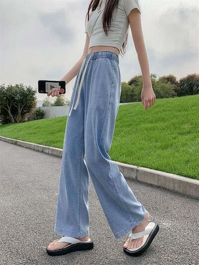 テンセルデニム ワイドパンツ レディース デニムパンツ UVカット 冷感素材 接触冷感 冷感 ガウチョパンツ サルエル パンツ ゆるパンツ リラックス ボトムス ひんやり 薄手 春 夏 秋 ウエストゴ