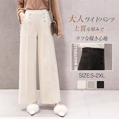 ワイドパンツ ボトムス 秋冬新作 レディースパンツ 秋 ガウチョパンツ 秋冬ワイドパンツ ゆるパンツ 高級感 きれいめ ゆったり 体型カバー大きいサイズ おしゃれ 可愛い 大人 OL 通勤 通学 フォ