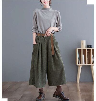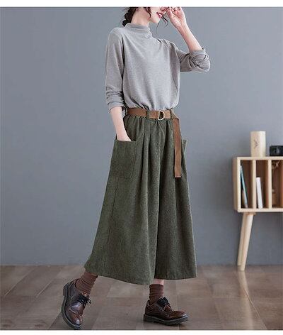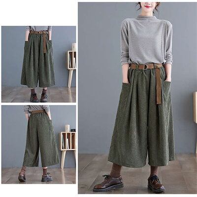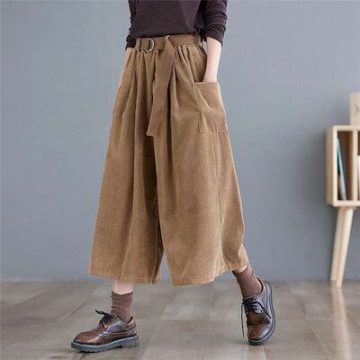 コーデュロイ パンツ レディース パンツ 秋冬 ワイドパンツ ガウチョパンツ きれいめ ウェストゴム ワイド コーデュロイパンツ 七分丈 ポケット付き 無地 シンプル ギャザー クロップトパンツ タッ
