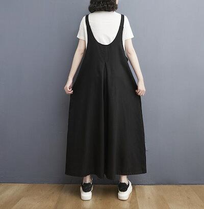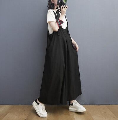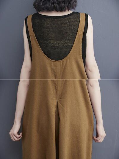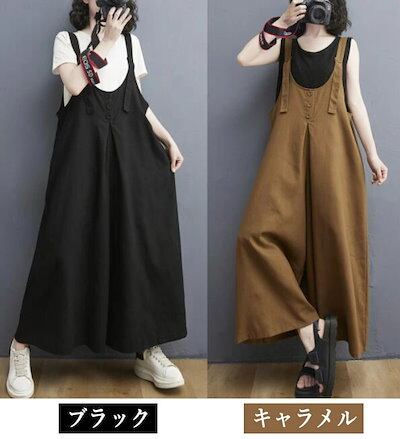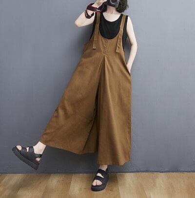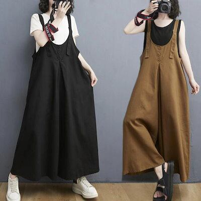 オールインワン ガウチョパンツ サロペット オーバーオール ガウチョ パンツ リネン 綿麻混  Uネック ワイドパンツ キャミワンピース レディース 9分丈 ロング丈 ノースリーブ オーバ