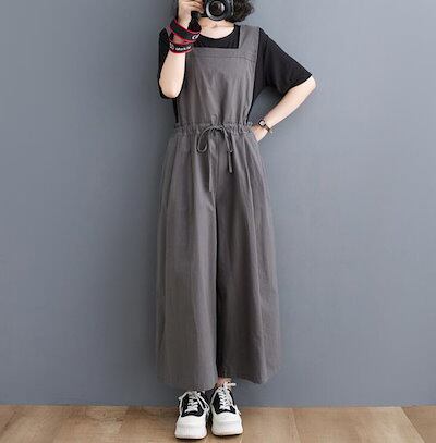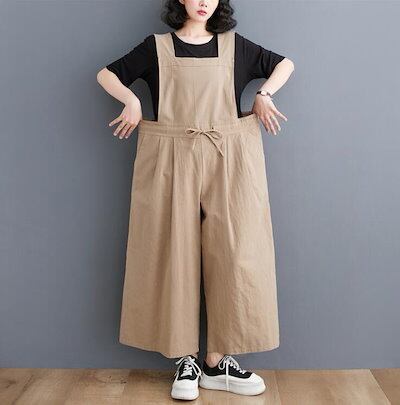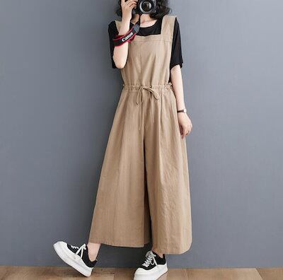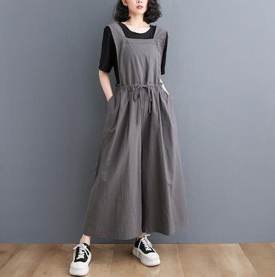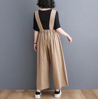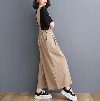 サロペット ガウチョパンツ  オールインワン オーバーオール ガウチョ パンツ リネン 綿麻混 ワイドパンツ レディース 9分丈 ロング丈 ノースリーブ オーバサイズ 大きめ きれいめ 春