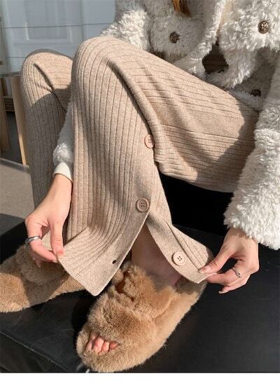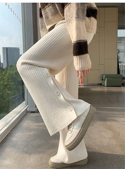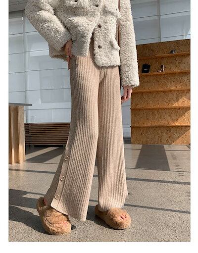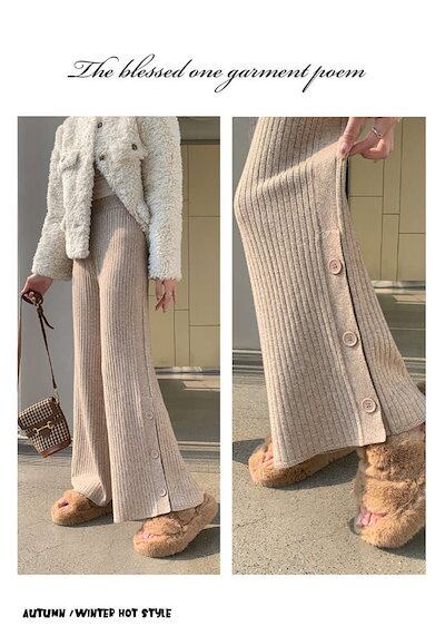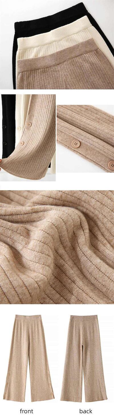 メガ割 ハイウエスト フレア パンツ ワイドパンツ フレアパンツ ワイド 無地 レディース ゴム ボトムス サイドスリット ニットパンツ ワンマイルウェア きれいめ ガウチョパンツ リブニット ゆった