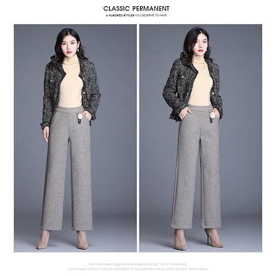 メガ割 ウール混パンツ ワイドパンツ レディース ガウチョパンツ ガウチョ ハイウエスト パンツ ボトムス きれいめ 通勤 オフィス L 着痩せ