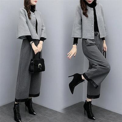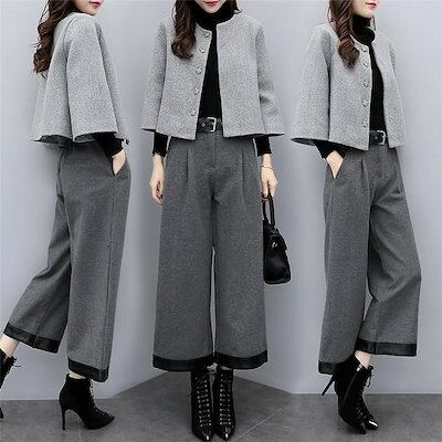 セットアップ パンツスーツ 2点セット ジャケット ガウチョパンツ ワイドパンツ フォーマルスーツ ゆったり レディース ラシャ 長袖 無地 フォーマル 入学式 卒業式 おしゃれ 大人 通勤 OL 秋