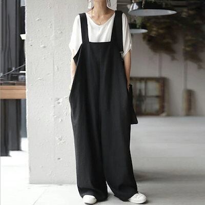 ワイドパンツ サロペット オールインワンパンツ サロペット オールインワン レディース サロペットパンツ パンツドレス オーバーオール ワイドパンツ ガウチョパンツ ゆったり 体型カバー 着痩せ きれ