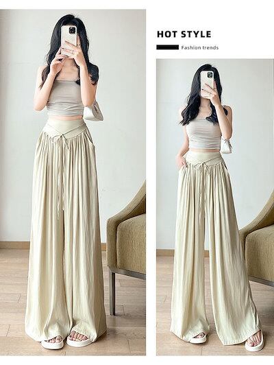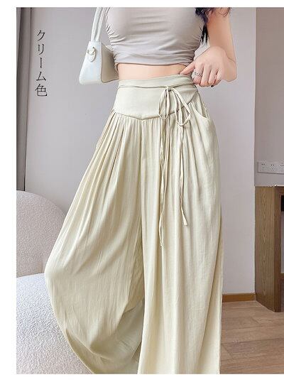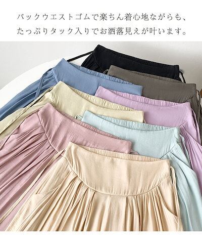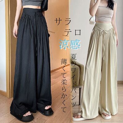 ワイドパンツ レディース 夏 涼しい 涼感 冷感 パンツ ボトムス ゆったり ガウチョパンツ タック入り タック ワイド 大きいサイズ ポケット付き ウエスト ゴム リラックスパンツ イージーパンツ