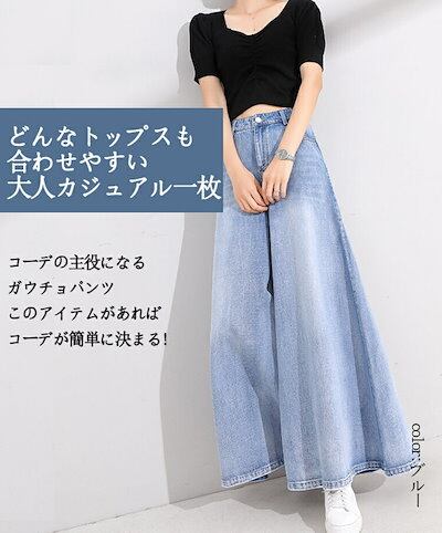 ワイドパンツ レディース デニム ガウチョパンツ 大きいサイズ ゆったり きれいめ デニムパンツ ワイド ふんわり ボリューム ロングパンツ 長ズボン カジュアル 美シルエット スカーチョ 揺れる 美