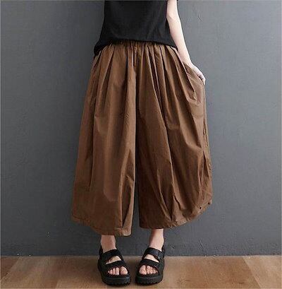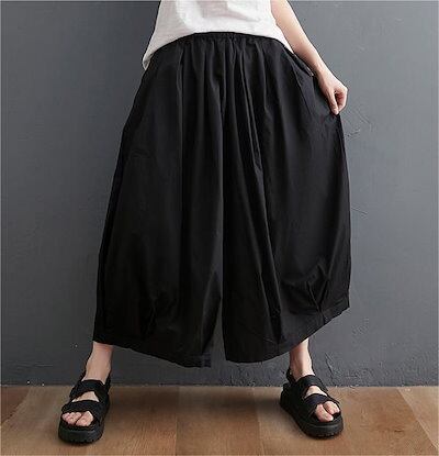 ワイドパンツ レディース バルーンパンツ コクーンパンツ チノパン ガウチョパンツ タックパンツ 春 大きいサイズ ゆったり ボトムス タック キュロット 体型カバー ウエストゴム 無地 リラックス