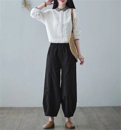 バルーンパンツ レディース サーカスパンツ リネン ワイドパンツ サルエルパンツ コクーンパンツ リネンパンツ カーブパンツ 春 夏 薄手 大きいサイズ ゆったり 切り替え ボトムス 九分丈 綿麻風