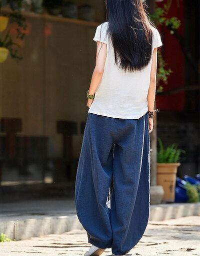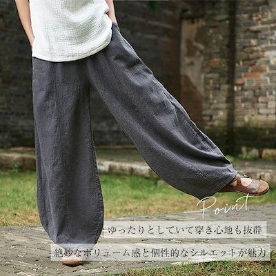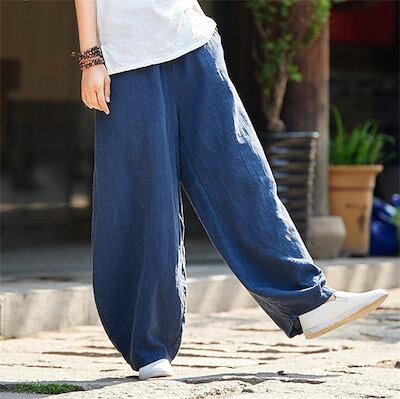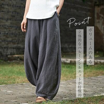 バルーンパンツ レディース 大人 リネンパンツ バルーンシルエット ワイドパンツ 春夏 大きいサイズ ゆったり ボトムス 綿麻混 コットンリネン コクーンパンツ サーカスパンツ 体型カバー ウエストゴ