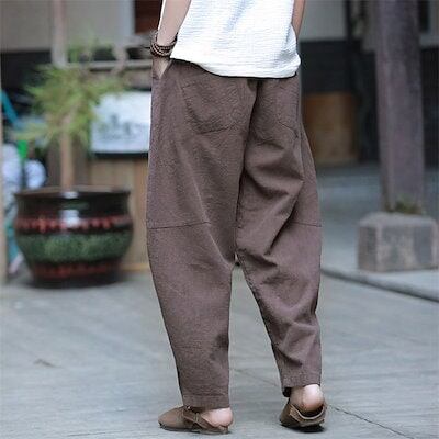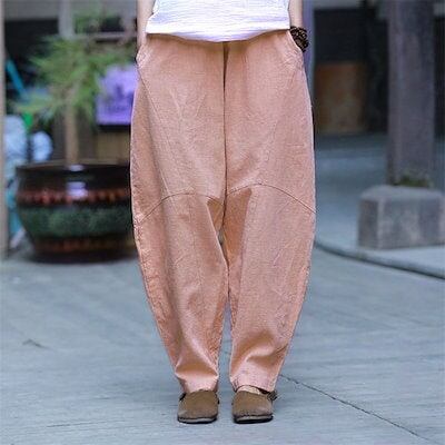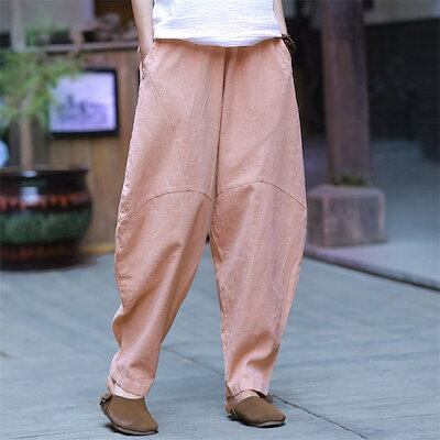 リネンパンツ バルーンパンツ 麻パンツ ロングパンツ ワイドパンツ 春 夏 レディース 綿麻 切り替え カーブパンツ サルエルパンツ ハロンパンツ リラックス ロング ボトムス ウエストゴム 通勤 オ