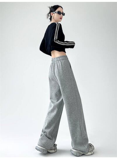 スウェットパンツ レディース 裏起毛 秋 冬 春 スウェット パンツ イージーパンツ ボトムス ワイドパンツ ロング パンツ カーブパンツ ロング丈 体型カバー ウエストゴム 無地 リラックス 着痩せ