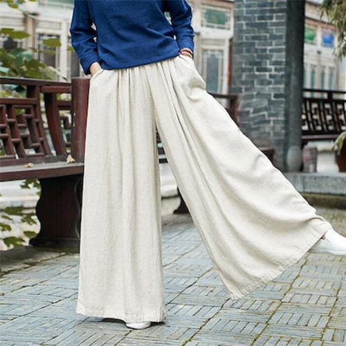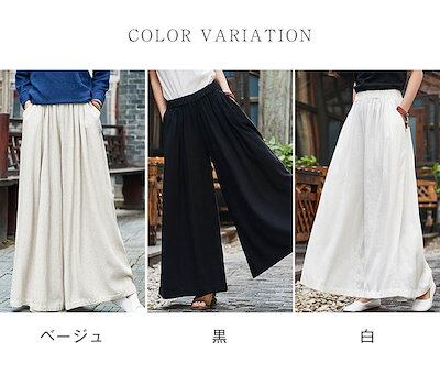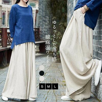 ワイドパンツ レディース ガウチョパンツ レディース 秋冬 春 夏 大きいサイズ ゆったり ボトムス 綿麻混 コットンリネン フレアパンツ 体型カバー ウエストゴム 無地 リラックス 着痩せ 美脚 通