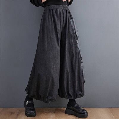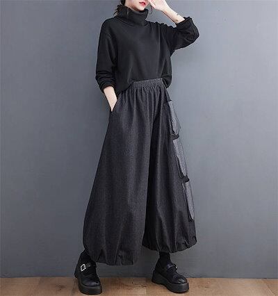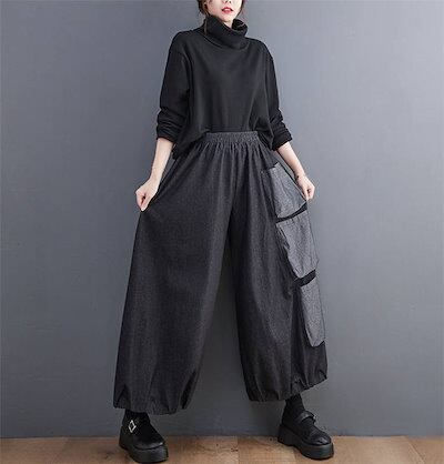 デニム ワイドパンツ レディース ガウチョパンツ デニム パンツ 春 秋 デニムパンツ 大きいサイズ ゆったり ボトムス キュロット パンツ ポケット デザイン ロング 体型カバー ウエストゴム 無地