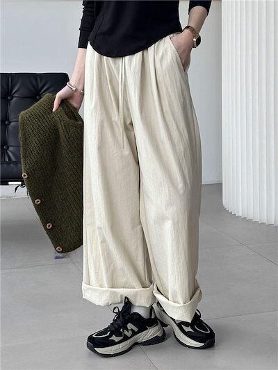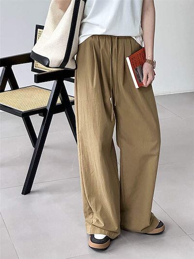 ワイドパンツ レディース 春秋 ワークパンツ レディース ロング マキシ 春 夏 秋 イージーパンツ ハイウエスト ボトムス 無地 ゆったり 体型カバー 美脚 通勤 仕事 カジュアル ウエストゴム