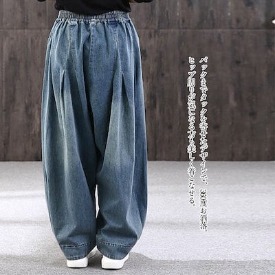デニム サーカスパンツ バルーンパンツ デニム ワイドパンツ 春 レディース デニムパンツ レディース 秋 大きいサイズ タックパンツ コクーンパンツ バルーン デニム ワイド パンツ ロング ボトム