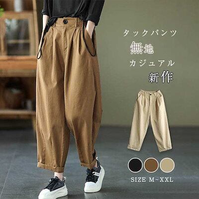 ワイドパンツ レディース きれいめ ガウチョパンツ 春 秋 レディース カジュアル タックパンツ 大きいサイズ ゆったり ボトムス タック 体型カバー ウエストゴム 無地 リラックス 着痩せ 美脚 通