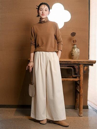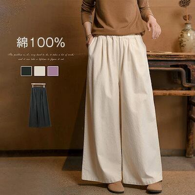 綿100% ワイドパンツ レディース きれいめ ガウチョパンツ 春 秋 レディース カジュアル ギャザー パンツ 大きいサイズ ゆったり ボトムス 体型カバー ウエストゴム 無地 リラックス 着痩せ