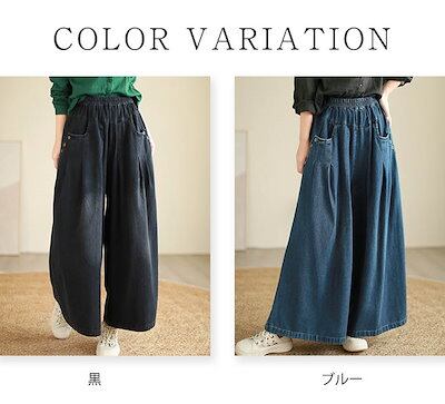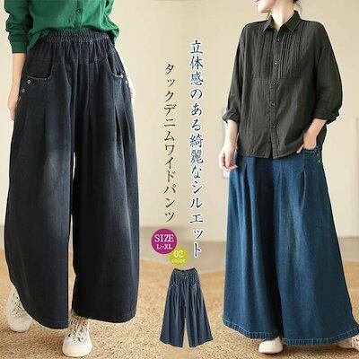 タック ワイドパンツ デニム レディース ボトムス 春 秋 冬 ロング デニム ワイド パンツ タック デニムパンツ 美シルエット デニムワイドパンツ オリジナル タックパンツ ウエストゴム 着回し
