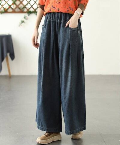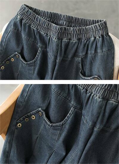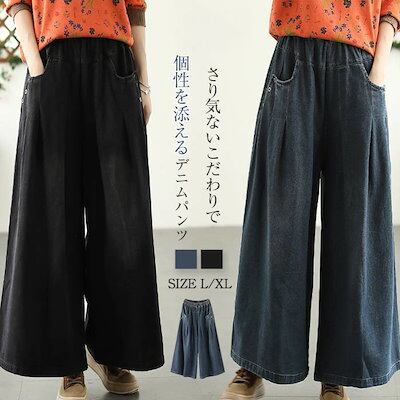 タック ワイドパンツ デニム レディース ボトムス 春 秋 冬 ロング デニム ワイド パンツ タック デニムパンツ デニムワイドパンツ ロングパンツ オリジナル タックパンツ ウエストゴム 着回し