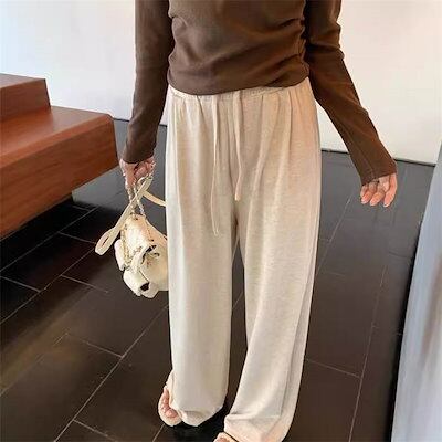 ワイドパンツ レディース リポン ボトムス ギャザー 春秋 春 夏 秋 パンツ レディースパンツ スラックス 大人パンツ キレイめ エレガント 大人 お洒落 無地 ワイド パンツ 美シルエット ハイウ