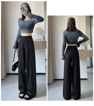 スラックス レディース 春 秋 ワイドパンツ ボトムス ポケット ハイウエスト 着痩せ ロングパンツ 脚長効果 スーツパンツ ロング 美シルエット オリジナル マキシ丈 無地 おしゃれ きれいめ 通勤