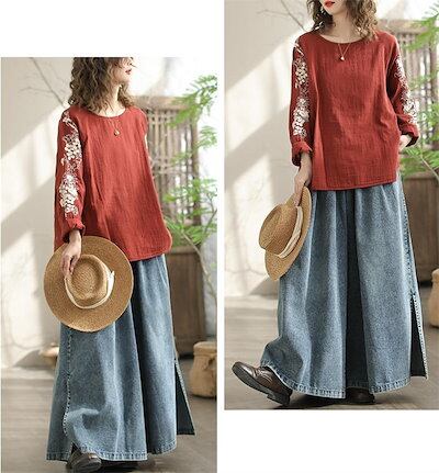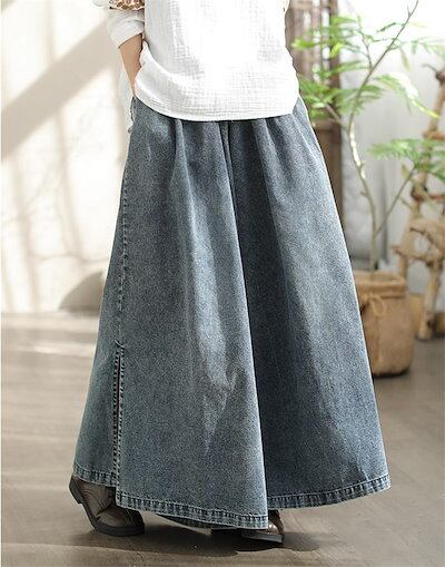 ワイドパンツ デニムパンツ ガウチョパンツ パンツ レディース 春 夏 秋 サイドスリット ガウチョ ワイドパンツ ロング丈 パンツ デニムワイドパンツ ゆったり 体型カバー 大きいサイズ ボトムス