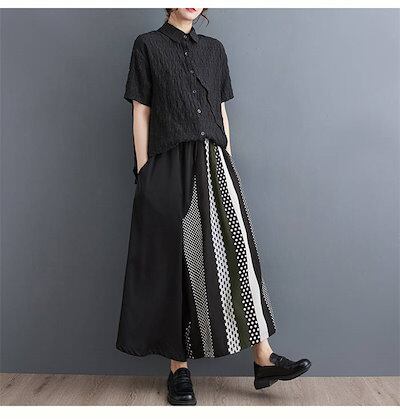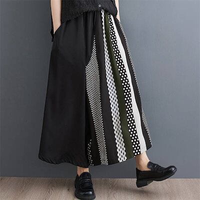 ワイドパンツ レディース ガウチョパンツ ストライプ ボトムス フレア ワイドパンツ 春秋 春 綿麻風 秋 9分丈 レディースパンツ スラックス 大人パンツ キレイめ エレガント 大人 お洒落 ワイド