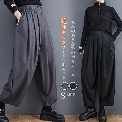 タック ワイドパンツ レディース ボトムス 春 秋 冬 ウエストゴム イージーパンツ ワイド パンツ タック スラックス 美シルエット オリジナル タックパンツ ロング丈 ゆったり 体型カバー 着回し